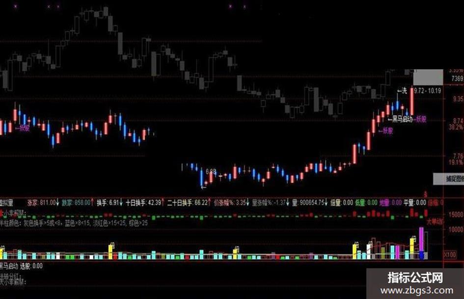 DRAWTEXT(选股,LOW-0.05,'←黑马启动'),COLORWHITE;