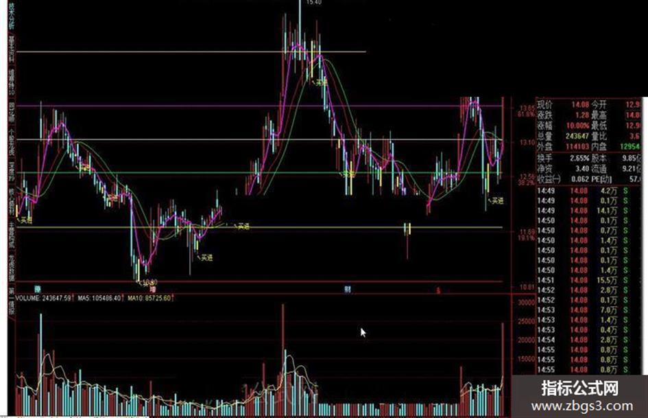 DRAWTEXT(FILTER(买=1,5),LOW-0.05,'↖买进'),COLORYELLOW;