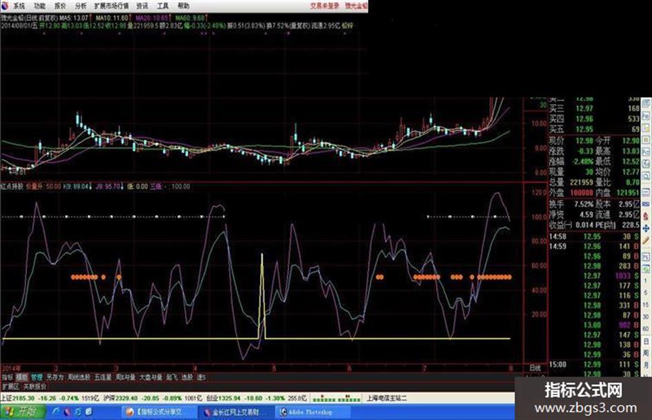 K9:SMA((C-LLV(L,9))/(HHV(H,9)-LLV(L,9)),3,1)*100,COLORFFFF00;