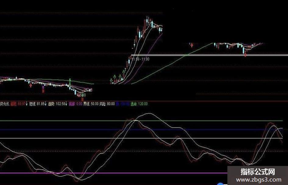 DRAWTEXT(CROSS(短线,超短) AND CROSS(趋势,超短) AND CROSS(趋势,短线),REF(超短,2)*1.2,'逃'),COLORBLUE;