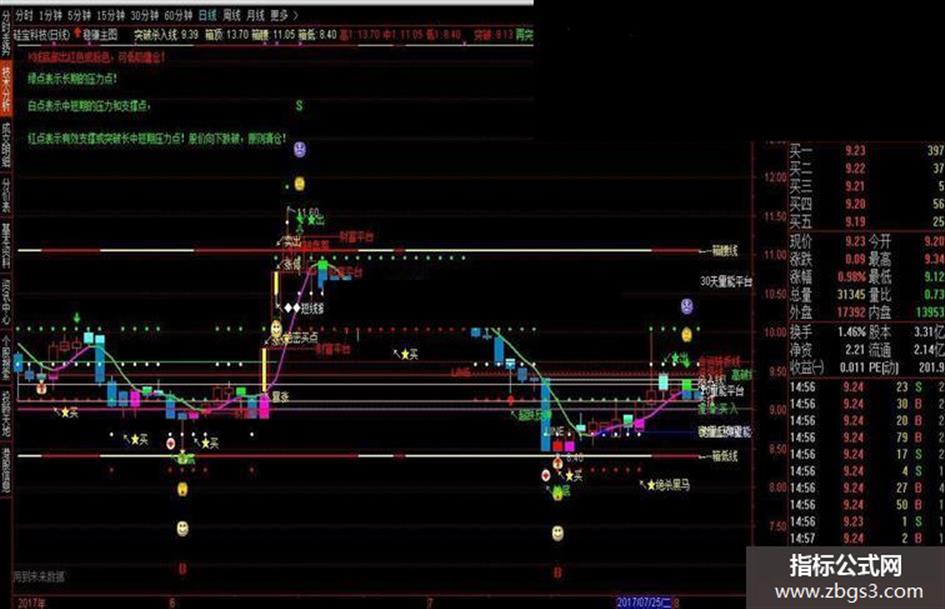 DRAWTEXT_FIX(CURRBARSCOUNT=1,0.02,0.16,0,'红点表示有效支撑或突破长中短期压力点!股价向下跌破,原则清仓!'),COLORGREEN;