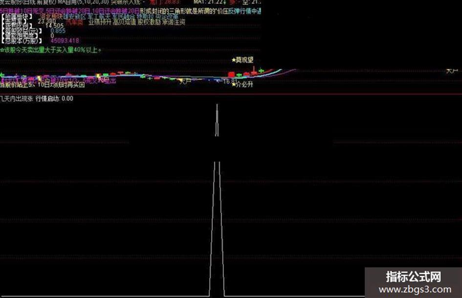 行情启动:IF(CROSS(股价指示,A),100,0) AND C/REF(C,1)>1.00 AND C<28>=0.50;