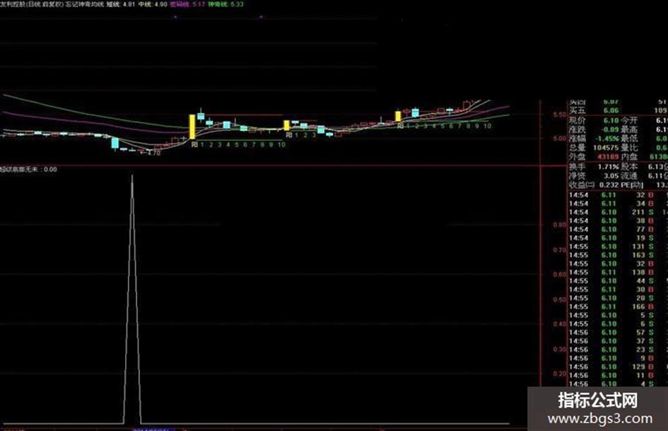 A9:=SMA(MAX(VOL-A8,0),6,1)/SMA(ABS(VOL-A8),6,1)*100;