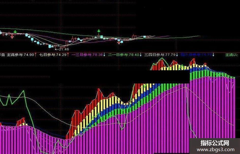 主流认知:EMA(100*(INDEXC-LLV(INDEXL,34))/(HHV(INDEXH,34)-LLV (INDEXL,34)),3),COLORGREEN,LINETHICK2;