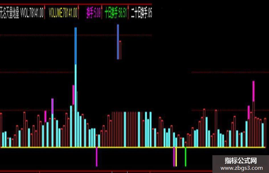 量柱下方,粉红色是三十日,黄色是六十日地量,绿色是一百天地量,蓝色是一年地量