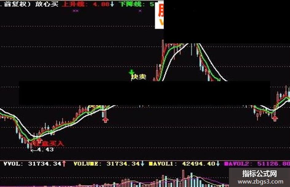 中间线:EMA(下降线,5),COLORWHITE,LINETHICK2;