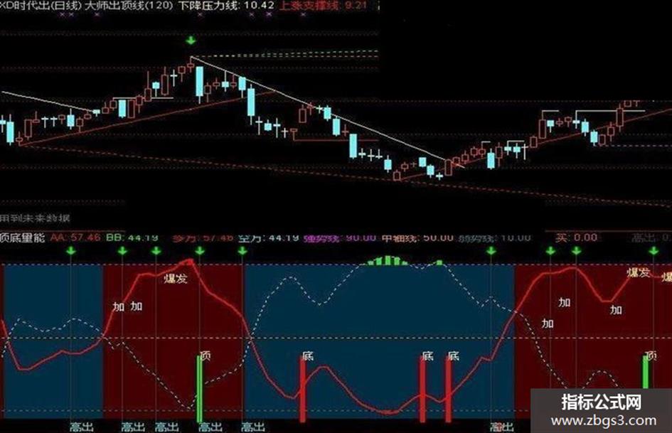 短期底部:=CROSS(趋势,见底),COLORRED;