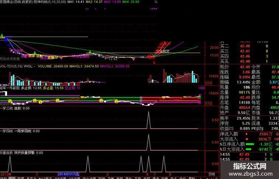 突然放量预警:VOL>REF(HHV(VOL,10),1)*1.5;