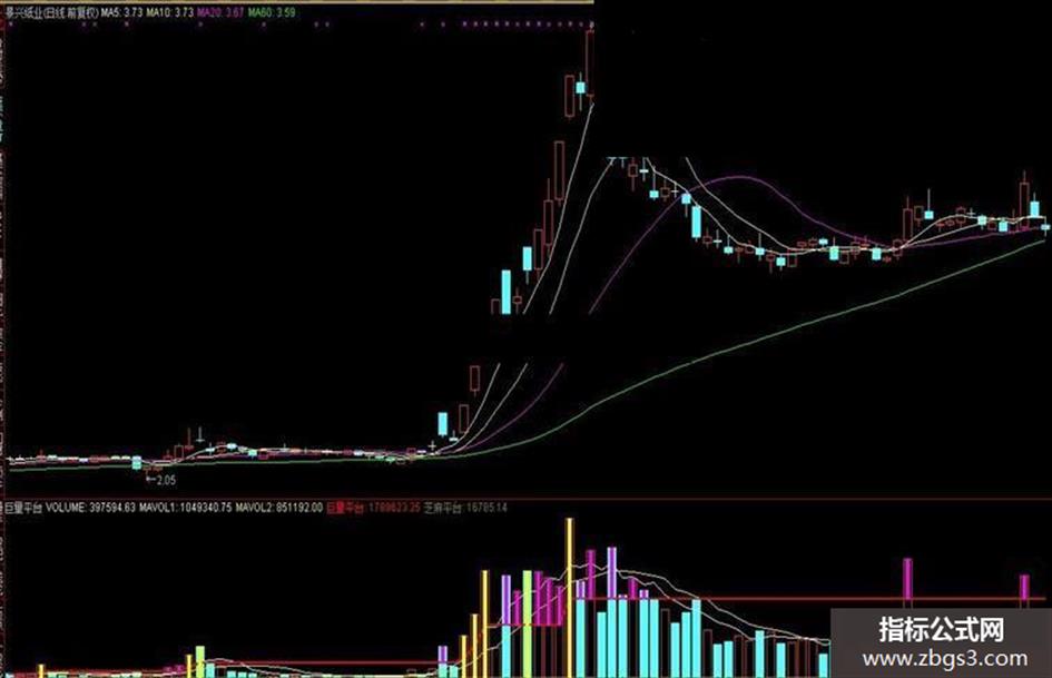 指标用法:低位出现的黄金巨量是买点,高位出现的黄金巨量一定要注意风险, 第一次出现黄金巨量后,回调后出现粉色成交量买进
