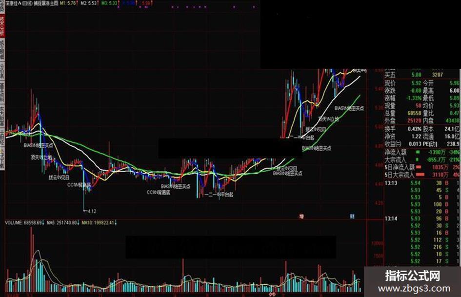 DRAWTEXT((C>O AND V>REF(V,1)*2.5 AND CROSS(C,MA(C,5))) OR (C>O AND V>REF(V,1)*10),L*0.975,'顶天\N立地');