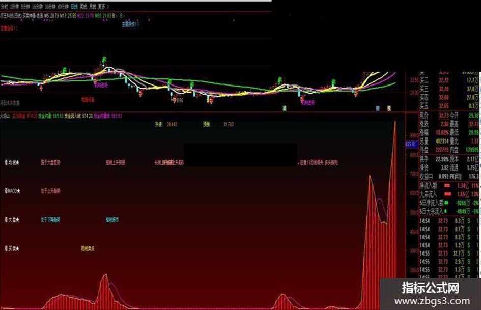 分享一个火焰山主力监控指标,价值12800元,免费分享给大家,希望对大家有帮助 1有红色柱子代表主力有进场、 2黄色线上穿紫色线且有红色柱子是买点,没有红色柱子不买 3黄色线下穿紫色线是卖点 可以配合其他指标使用更有效