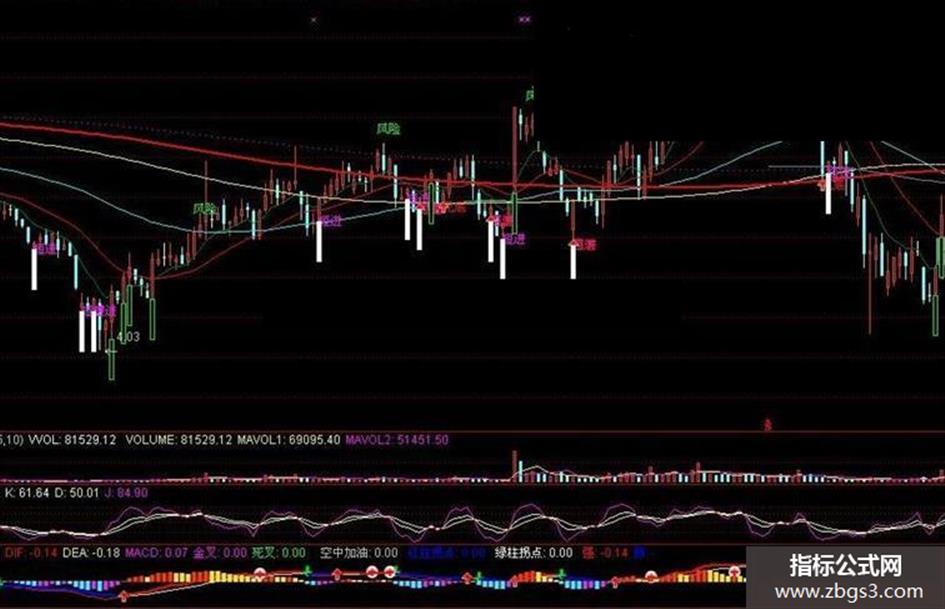 DRAWTEXT(CROSS(动能趋势线,70),HIGH*1.02,'风险'),COLORGREEN;