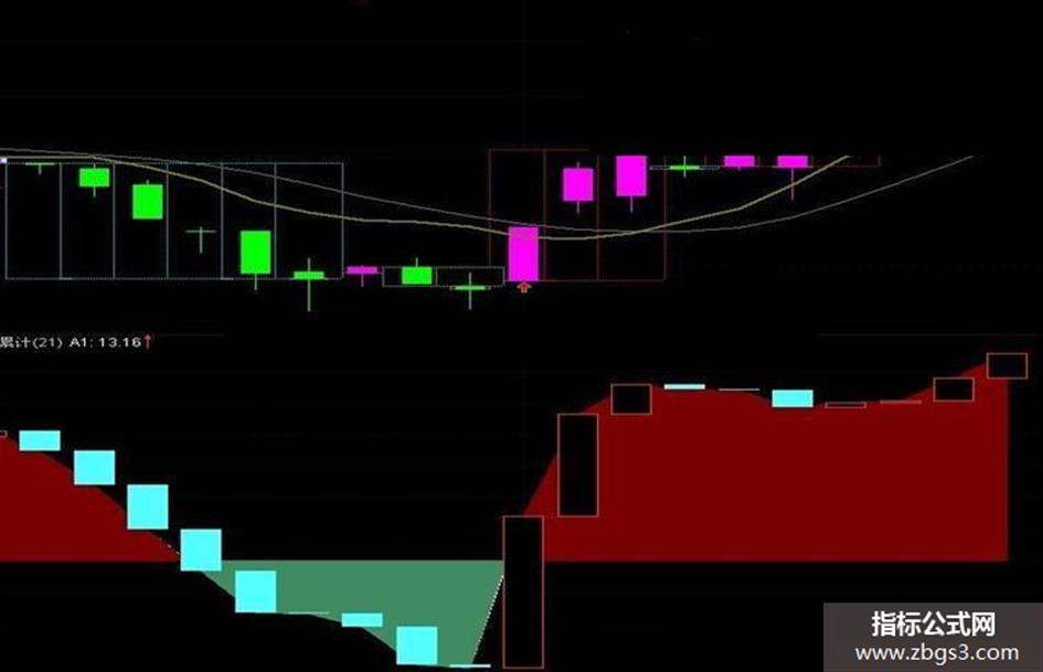 {n=0 100 21} 请设置以上参数 -------------- LB:=V/REF(MA(V,5),1); OLB:=IF(C>REF(C,1),LB,-LB); A1:SUM(OLB,N); DRAWBAND(A1,120,0,RGB(65,139,99)); DRAWKLINE(HHV(A1,1),REF(A1,1),REF(A1,1),A1);