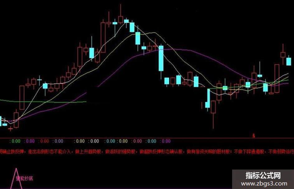 量能抄底:CROSS(OBV,OBV高) AND H<C高 AND C>趋势线 AND C>工作线 AND C<生命线 AND 量<50 AND 条件2;