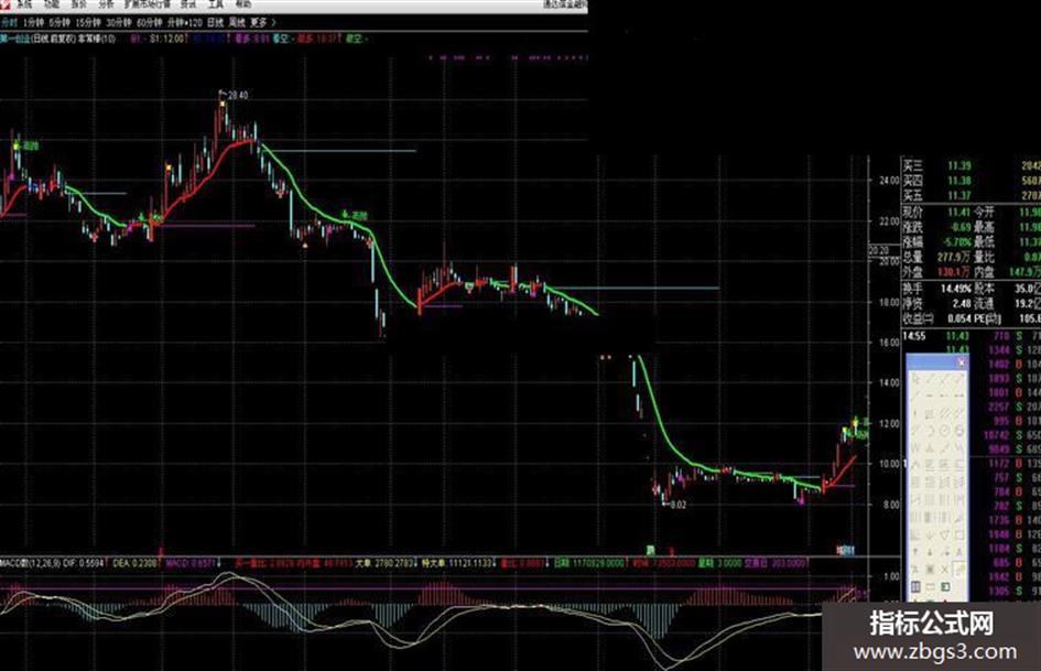 直接显示阻力支撑,向上突破红线即买入,向下突破绿线即卖出。顶好的指标,今年赚钱靠它了。