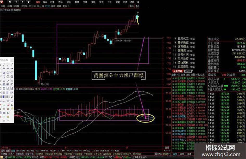 又到周末,还有十多天就是国庆了,本想在国庆期间才把该指标发的,但下周开始小新就要外出一段时间,可能没时间上论坛,所以还是先将源码发了吧,该指标是在原来的MACD指标基础上(参数略做修改),增加了些数据来演变成主力线和能量线,这样传统的MACD指标的DIF、DEA及MACD等在本指标只是作为辅助判断用了,该指标更注重的是看主力线和能量线,主力线翻红说明主力做多意愿强,可买入后一直持股至其翻绿;能量线是配合主力线来使用的,能量线由绿翻红则可以推动主力继续做多上涨,能量线翻绿后说明主力做多意愿已经衰竭,开始做空了,所以,我们必须在主力线由绿转红时买入,若能量线之后也由绿变红则说明该股有开始做多的愿望了,我们可以一直持有至主力线由红变绿,当然也可以一直持有至能量线的衰竭由红变绿,超级短线则建议以主力线的红绿线来买入或卖出,一般短线可以以能量线的红绿线来操作,当然你若是中长线者则可以看周线或月线的主力线和能量线的红绿线来操作,该指标曾有券商老总以数W元向小新购买,但遭小新婉拒才得以向大家公示和共享