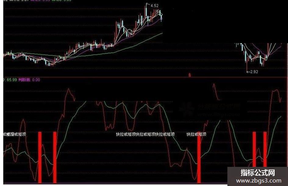DRAWTEXT(CROSS(短趋势,长趋势)AND 长趋势>25 AND 长趋势>REF(长趋势,1),50,'快拉或短顶');