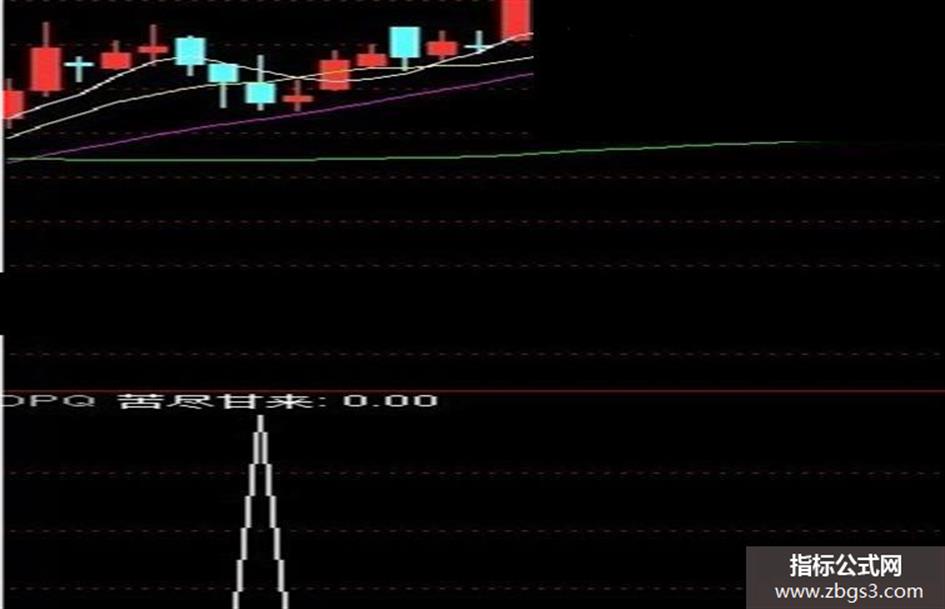DIF:=EMA(C,12)-EMA(C,26),COLORRED; DEA:=EMA(DIF,9); MACD:=2*(DIF-DEA),COLORSTICK; 苦尽甘来:C<BBI AND EVERY(MACD>0,7) AND REF(C<O,1) AND REF(C<O,2) AND C<O AND C>=MA(C,20);