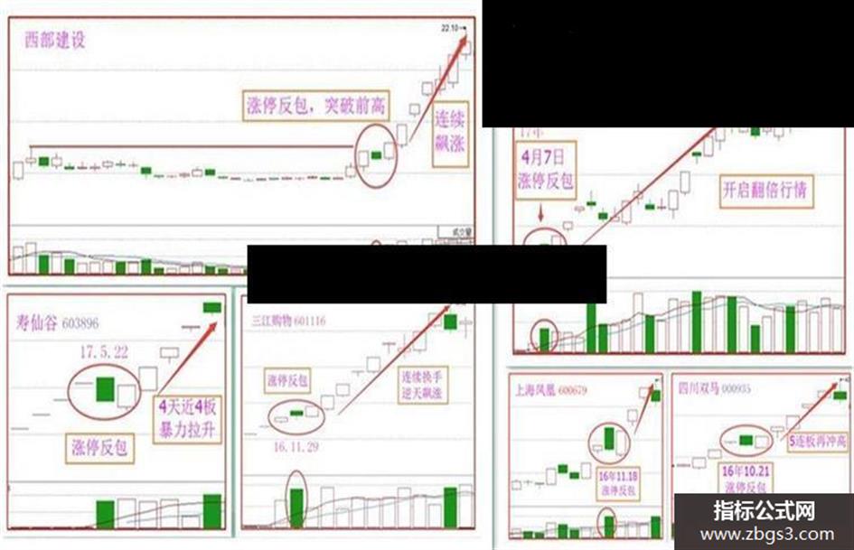 涨停反包通常K线形态是:第一天涨停(或涨幅大于7%),第二天收阴线,第三天涨停大阳线反包阴线(往上吞没阴线实体一半以上)。