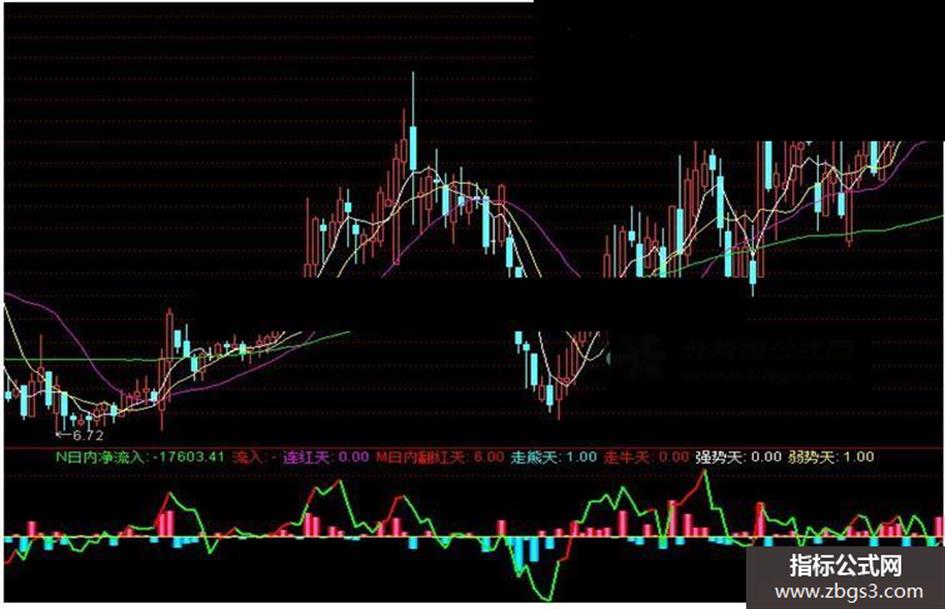 走牛天:BARSLASTCOUNT(N日内净流入>0),COLORRED;