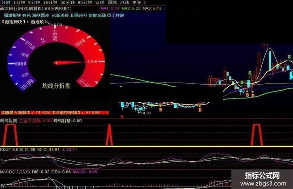 弯弓射箭来源放牛郎金牛登山系统。本人使用感觉很好。有源码! KDJ MACD 弯弓射箭 B 同时发出买入信号。买的放心!自己去正确运用才是硬功夫!