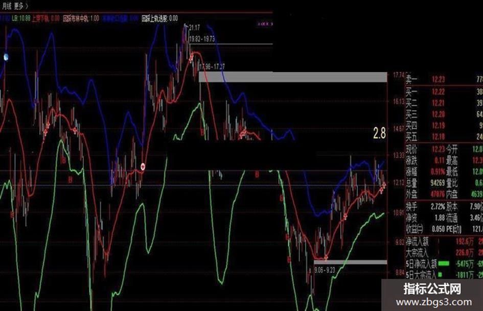 上穿轨道:=CROSS(C,BOLL) OR CROSS(C,UB);