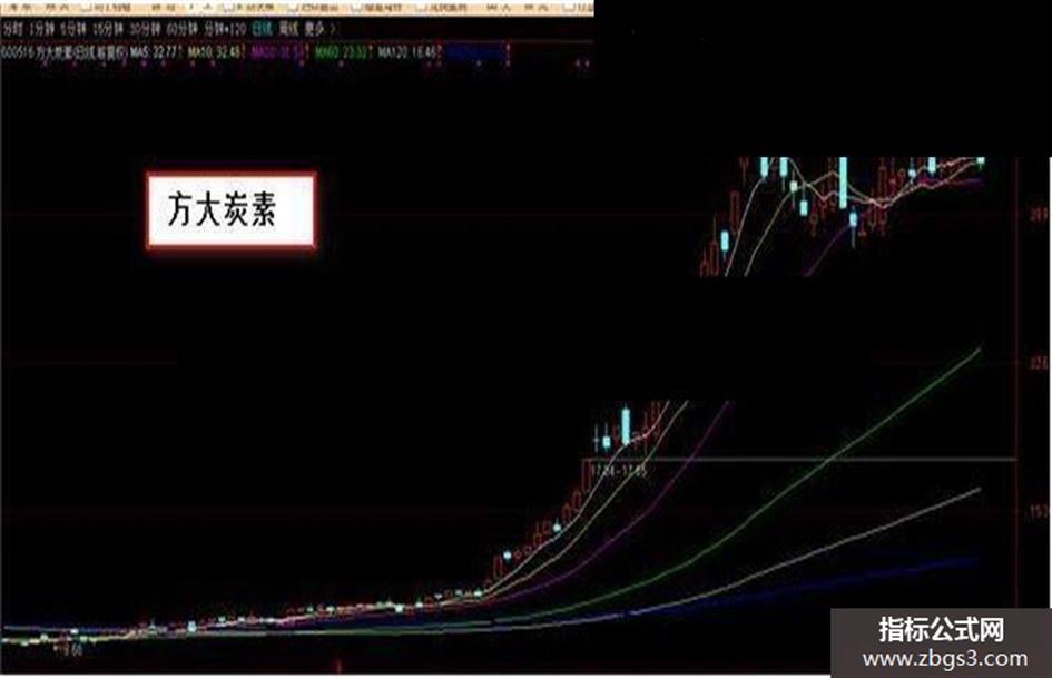 大家都知道,最常见的股票均线系统包括5日线10日线20日线30日线60日线120日线250日线,5日线10日线属于短期均线,20日线30日线60日线属于中期均线,120日线250日线属于长期均线,短期均线依次向上金叉中长期均线,形成5~10~30~60~120~250从高到低多头排列,这就标志着大牛股形成了!如下图所示的600516方大炭素。