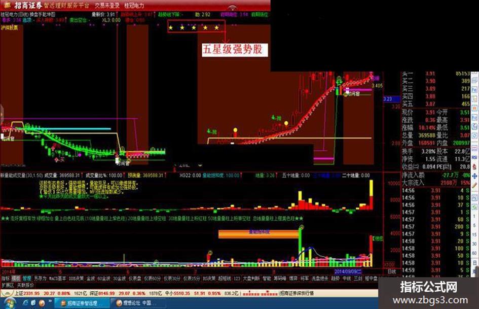 趋势线上升:IF(HS,趋势线,DRAWNULL),LINETHICK2,COLORRED;