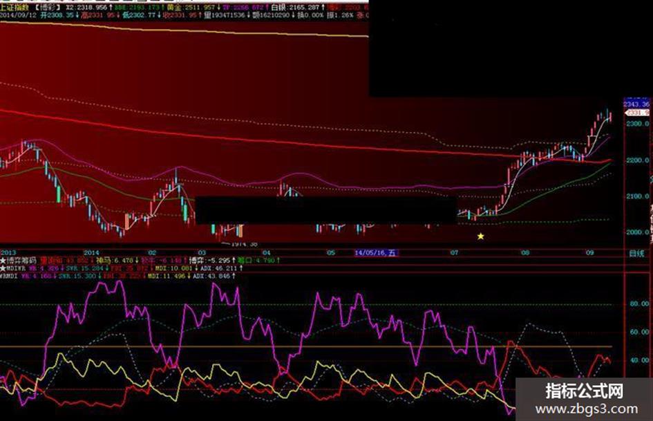 人对WR进行了较大的变动,MDI对参数进行调整。把二个指标组合一起后就变成了一个指标,三条加粗线是主要运用线,三条数值线为判断线。具体用法从图一看便知。对于判别顶底,主升和盘整会有所帮助
