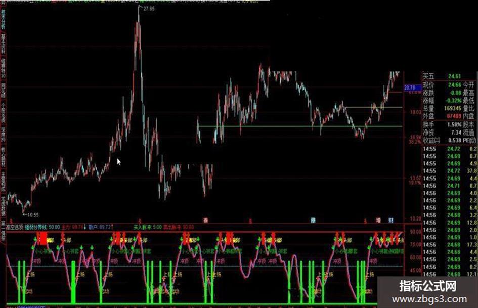 买入脉冲:IF(CROSS(主力,散户) AND 主力<35,55,5),LINETHICK4,COLORGREEN;
