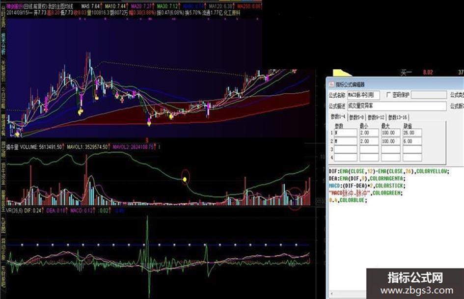 1,擒牛量引用后加入obv能量突破和地量,你还可以加入自己喜欢的其它提示。 2,macd脉冲源码引用,有了这个你可以把他任意加入买点和卖点了,还可以把macd脉冲上穿0.4显示买入提示放入主图, 比如:STICKLINE(CROSS("MACD脉冲.脉冲",0.4),O,C,3,1),COLORBLUE;
