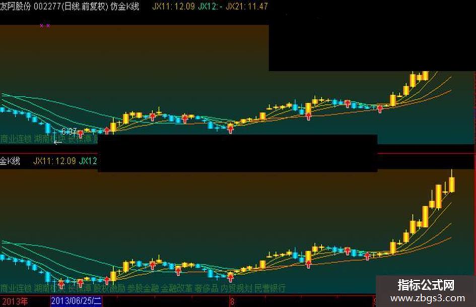 {特注,此公式为【仿金K线】,虽略有差异,差异不大,可以替用【金K线】}