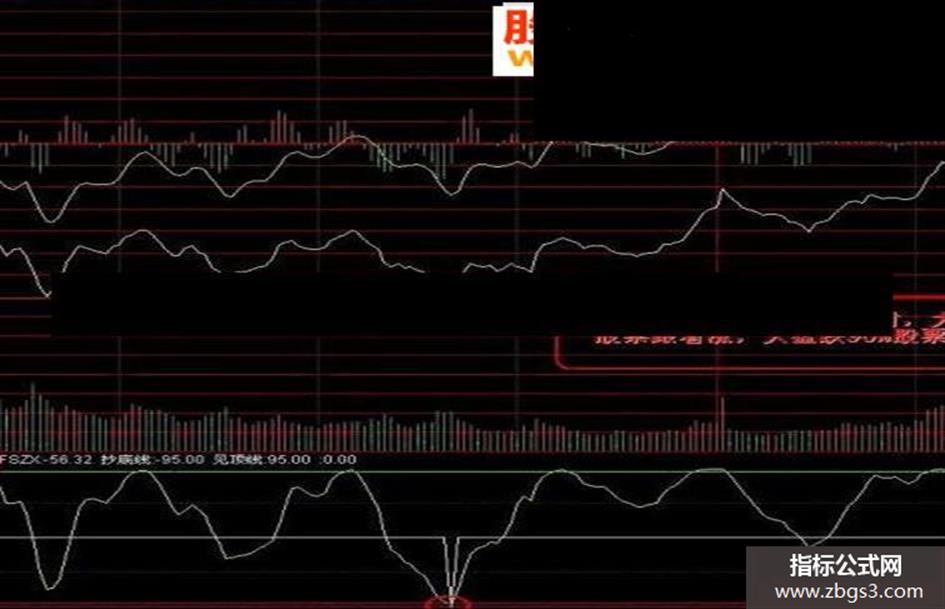 DXJP:=(CLOSE-LLV(LOW,34))/(HHV(HIGH,21)-LLV(LOW,34))*100; FSZX: (EMA(DXJP,3)-50)*2,COLORYELLOW; 抄底线:-95,COLORRED; 见顶线:95,COLORGREEN; IF(FSZX<=-95,-100,0),COLORWHITE;