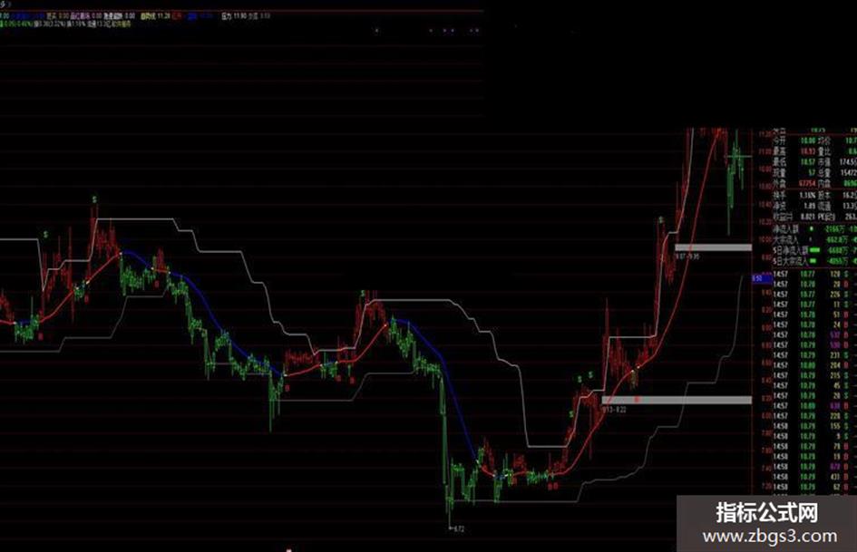指标取自网络,本人做了点外观上的优化,先谢谢最早写这个指标的老师的无私付出,个人将之作为常设主图,结合别的附图指标,感觉还是有一定指导作用,就是有大部分指标的通病,卖点出的有点延迟,但波段获利还是不错的,用法很简单和布林线类似,但有买卖点波段提示:1、中间波段指导线相当于布林中轨,红买绿卖,黄色为观望阶段,可能转势,特别是转为跌势 2、支撑压力,相当于布林上下轨,特别是当支撑线走平,出买点,红线向上时,是个相对安全的买点,无法冲过压力线压制,压力线走平,注意回调可能 3、上升下降通道中的反弹或者持股待涨,公式是死的的,只能其辅助作用,具体操作看个人的理解,结合其他指标共同判定比较好用