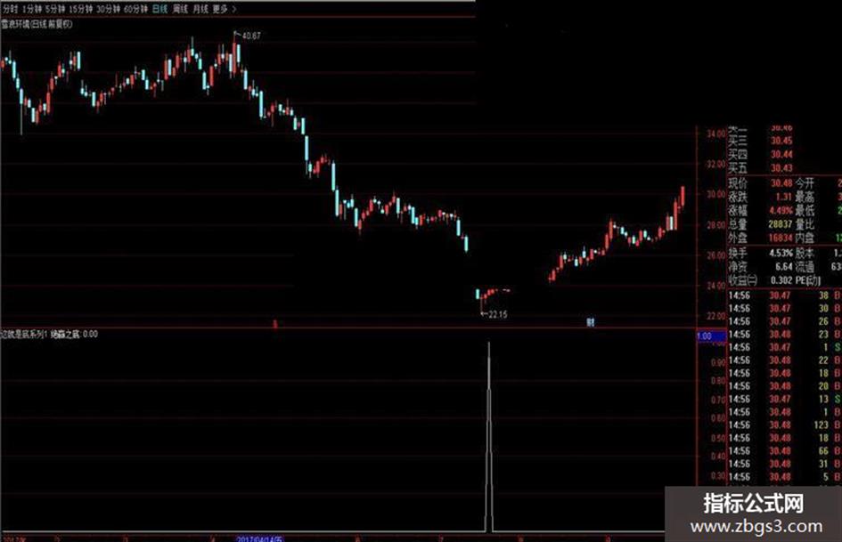 使用说明: 1,都说追高毁一生,抄底富三代,但要抄底在底部谈何容易,这个指标提供的就是至少你亏不了钱的铁底。不亏钱的股票,那就是赚钱了。 2,使用方法开盘价跌破止损,走好再接。指标不是万能的,不要奢望一个指标就能富甲一方,但用好了,抓涨停板,抓短线都是很好的。 3,结合股友们自己的抄底指标去做,信号更可靠,如果没有其他抄底指标注意我的“这就是底系列”后续指标。