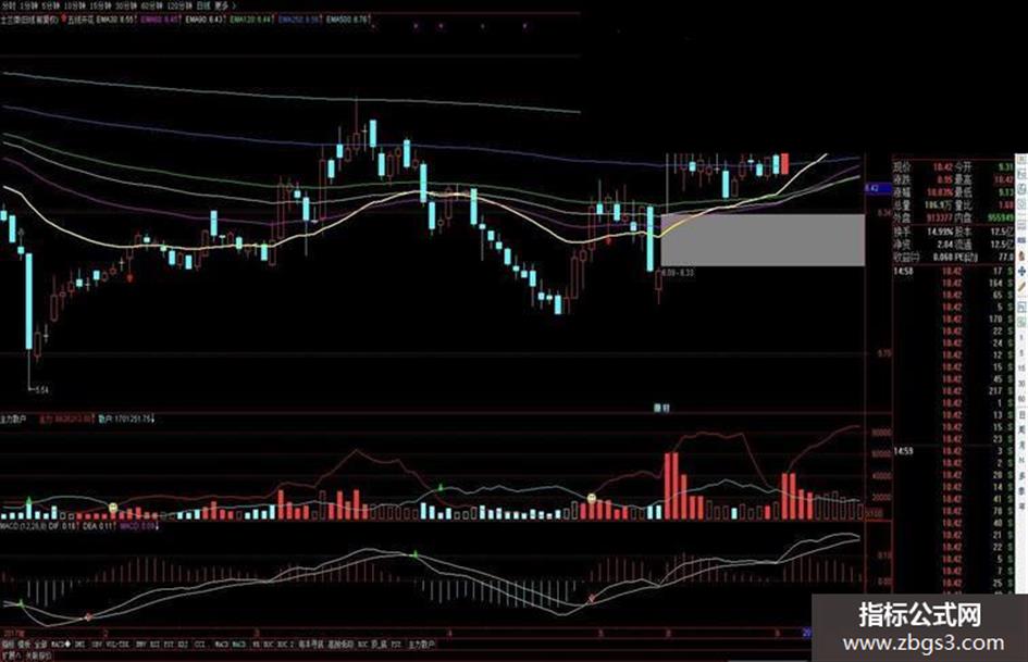 红线上穿蓝线为上升趋势;红线在上,持股,加仓为宜! 蓝线下穿红线为下降趋势;蓝线在上,持币,减仓为宜!