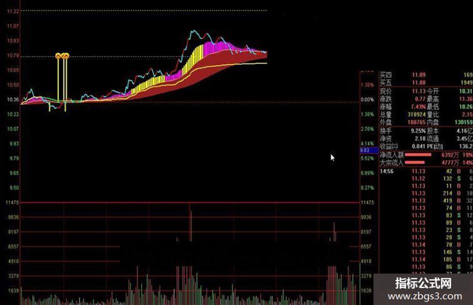量价关注:IF(CROSS(VAR3,VAR5) AND VAR6,1,0),NODRAW,COLORWHITE;