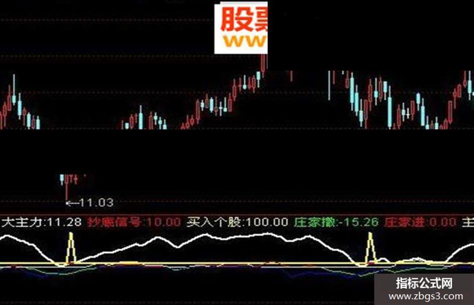 买入个股: IF(CROSS(大主力,抄底信号),100,10), ,LINETHICK2,COLORYELLOW;