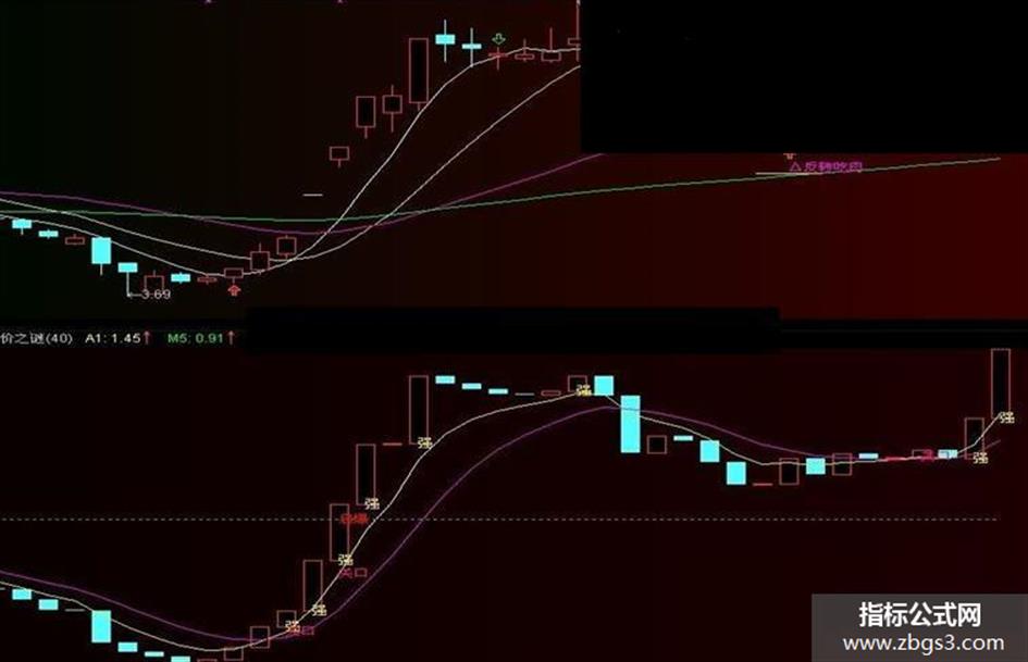 DRAWTEXT(A1>REF(A1,1)*1.02 AND M10>REF(M10,1) AND C>REF(C,1)*1.02 AND V/REF((V,5),1)>1.6,REF(A1,1),'强'),COLORYELLOW;