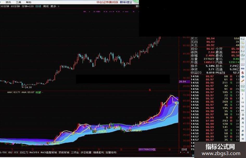 观望:IF(AAK=AAA,AAK,DRAWNULL),COLORGREEN,LINETHICK2;