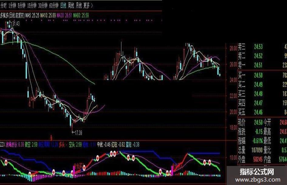 波峰波谷:SMA(拉升力A,3,1),COLORFF00FF;
