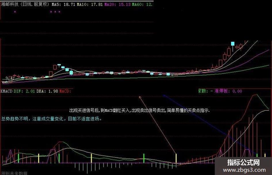 DRAWTEXT_FIX(情况13=1,0,0.00,0,'该股形态不佳,注意成交量的变化,但目前不适合参与。'),COLORCYAN;