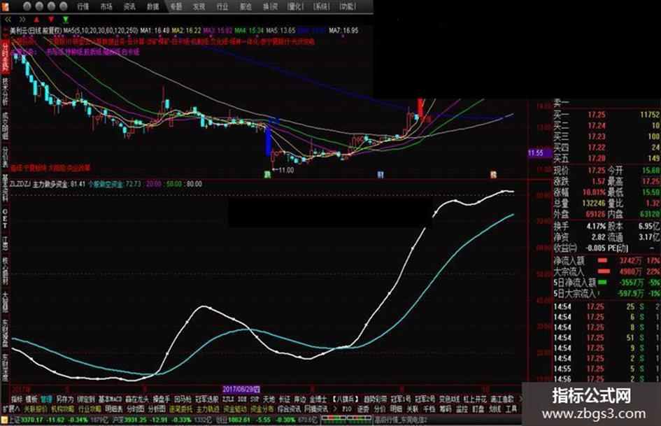主力做多资金:EMA(B,5),LINETHICK2,COLORWHITE;