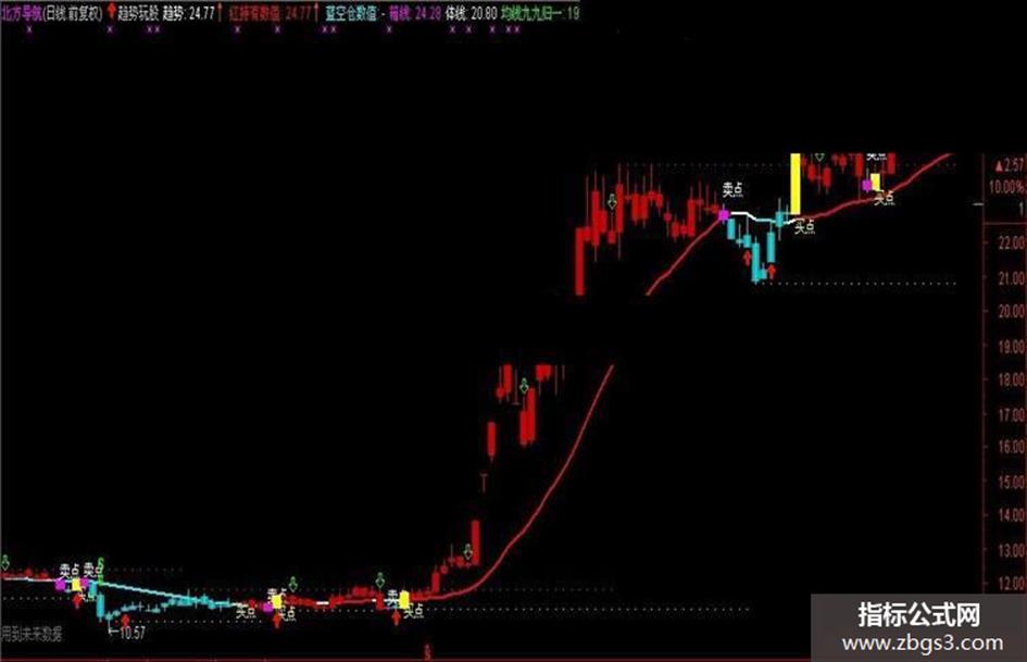 指标特色: 1、趋势线红色操盘、青色休息; 2、变色K线一目了然,不用多说; 3、支撑、压力划线指明操盘策略; 4、买、卖信号提示要结合macd、kdj、cci等系统自带指标使用效果更好; 5、执行操盘经律是保证利润、资金安全的前提