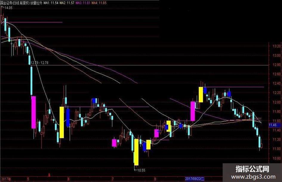 STICKLINE(拉升放量,OPEN,CLOSE,8,0),COLORYELLOW;