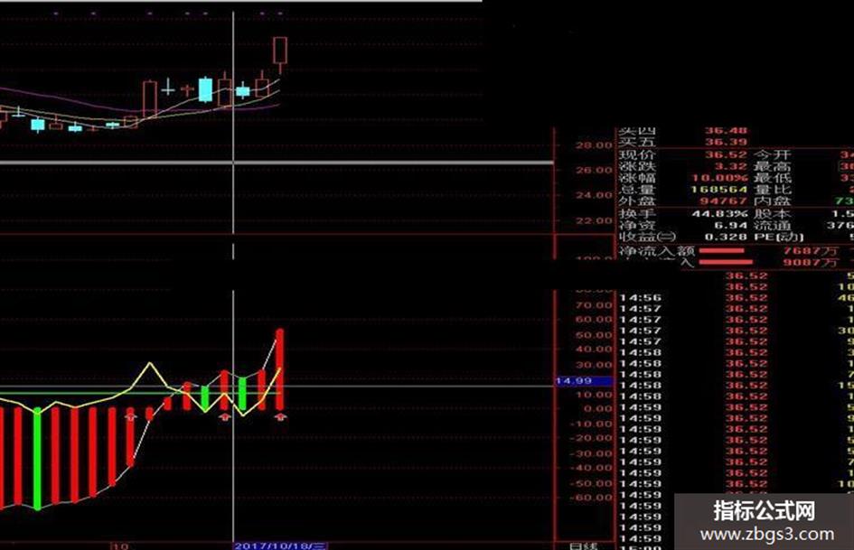 一个有名的老师给的,按着这个操作绝对不会赔钱, 就看你的执行力了。红柱子-上绿线(买入线)少量买,第二天上升接着加仓。反之出局(赔的极少)。有失败自己把握做吧,祝你发财