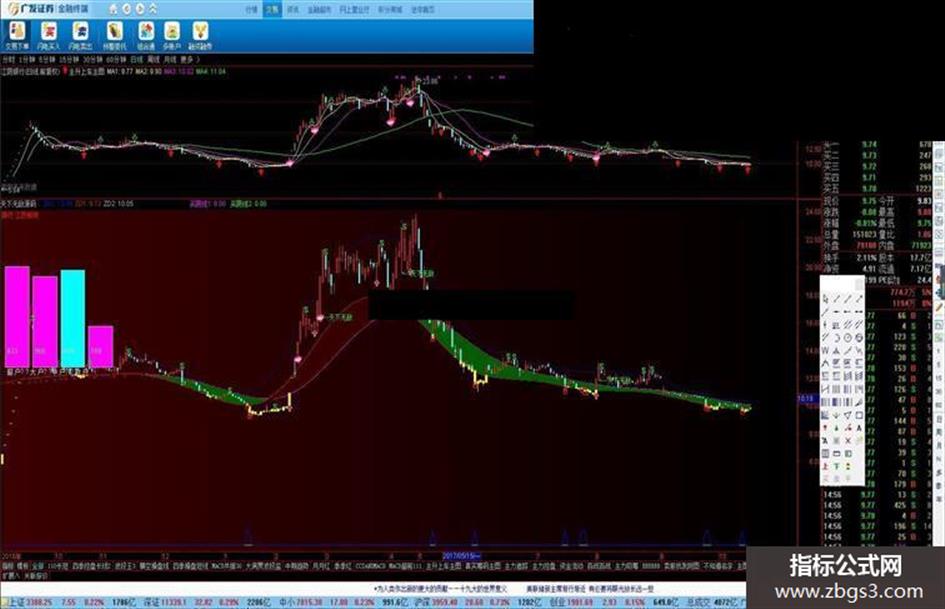 买阴线1:操作线<5 AND ZD1>ZD2 AND L<ZD1;