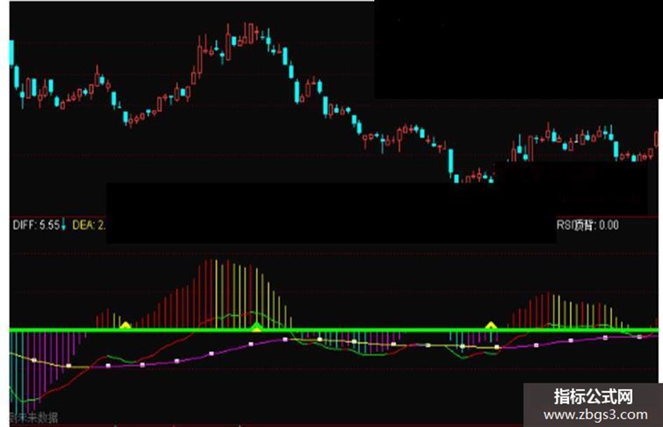 RSI顶背:IF(D3>0,0.1,0),COLORWHITE,POINTDOT;