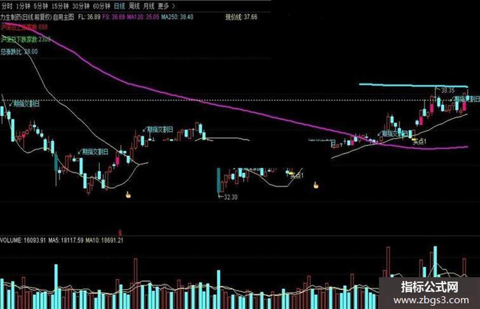 2.黄、白线,二线合一,代表走势转强,二线劈叉,代表走势转弱