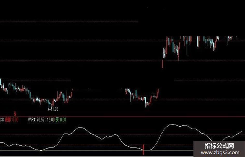 买:IF(CROSS(VAR4,10) ,50,0),STICK,COLORGREEN,LINETHICK3;0,STICK,COLOR000000,LINETHICK3;